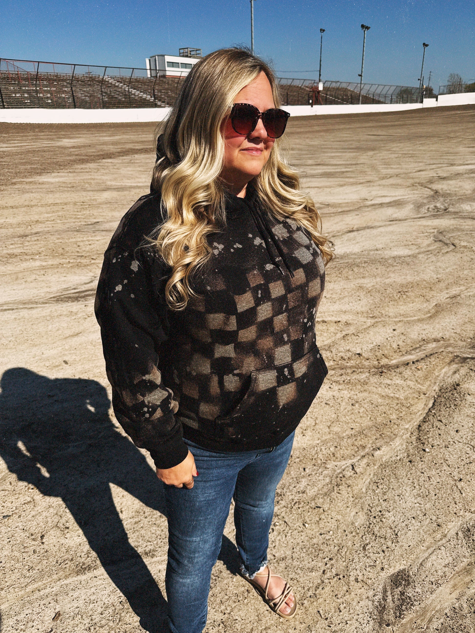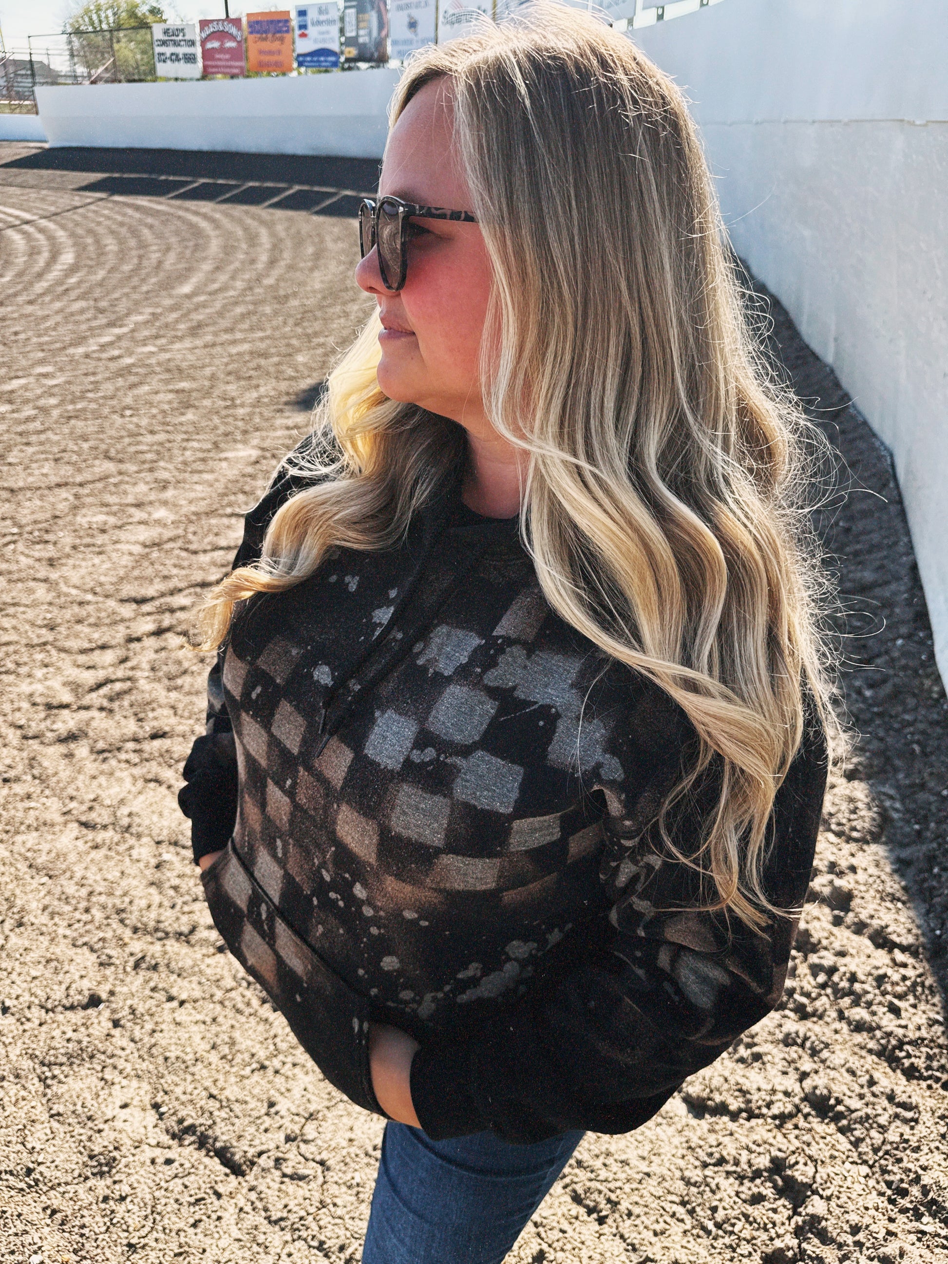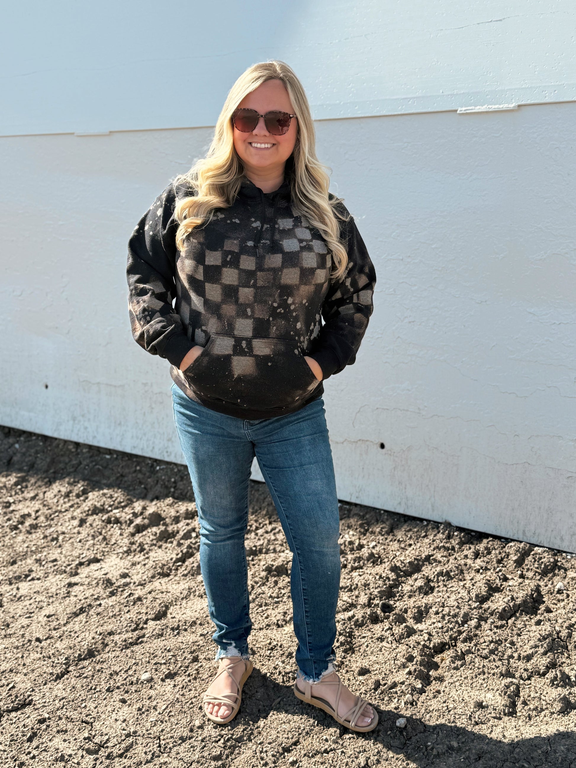 These are black Hoodies that have been hand bleached with an added touch of some checkered patterns.