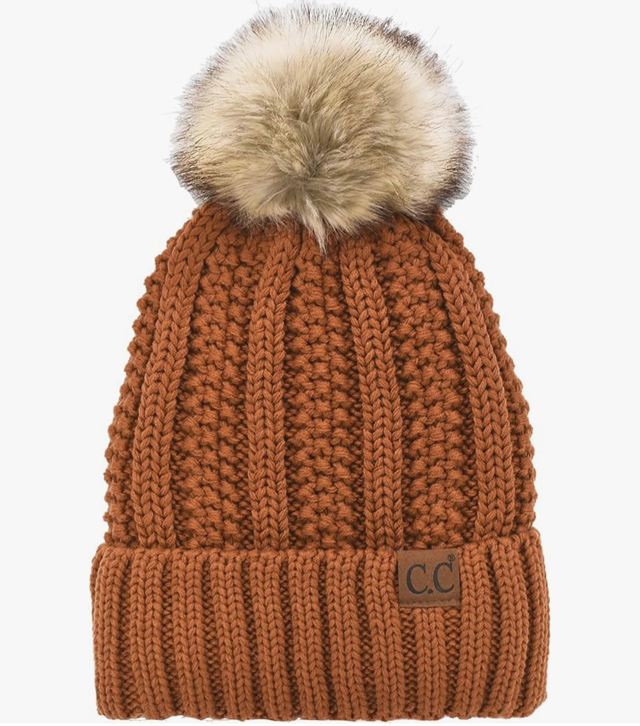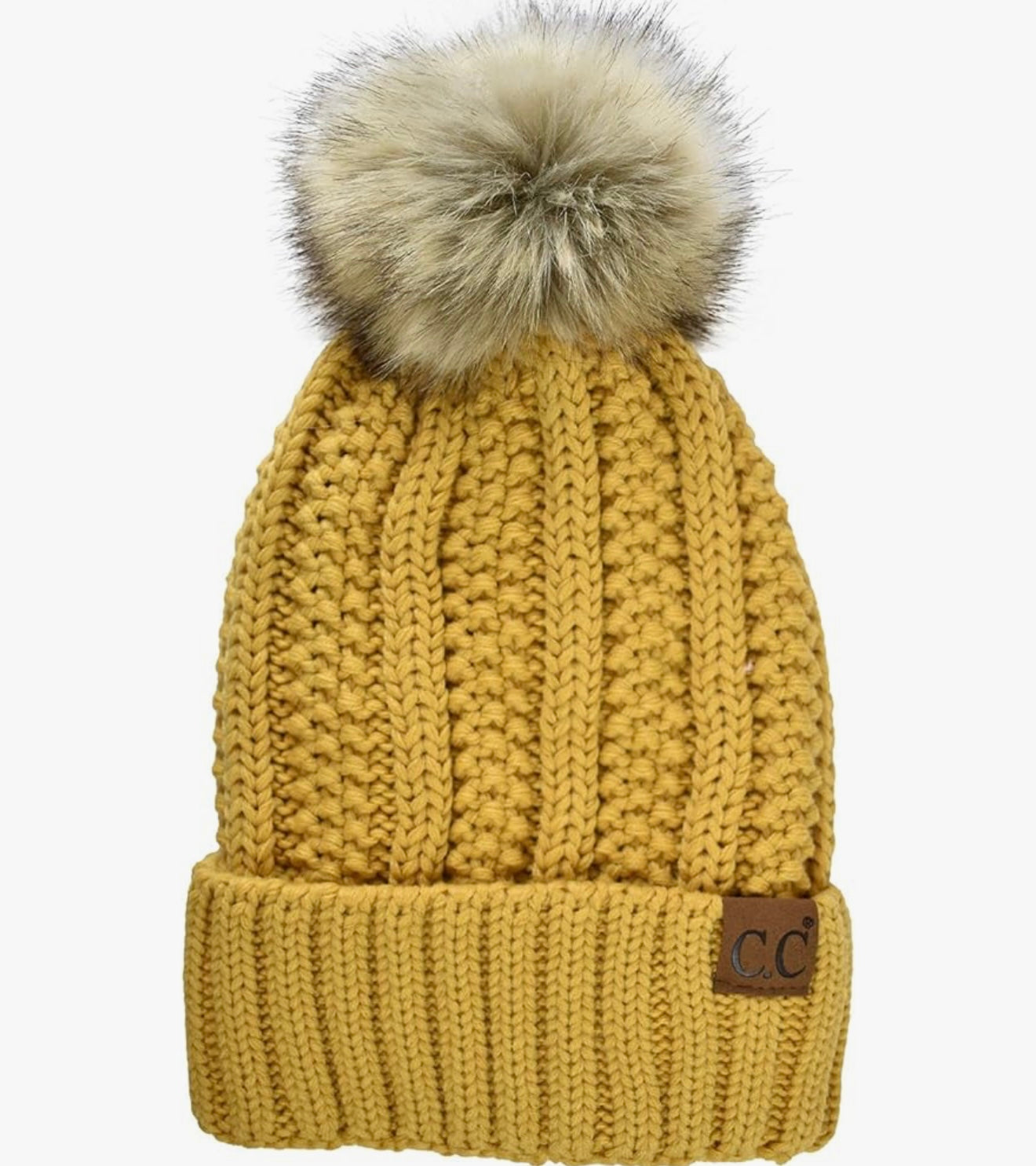 The Women's C.C Sherpa Lined Fur Pom Beanie is a great go-to accessory for cold weather. If you're looking to combine the best of function and style this winter, this fleece-lined winter hat for women is what you need. Complete with a faux fur pom and a variety of color options, you can choose your favorite C.C hat for a cozy and stylish season ahead. Look your best this winter with the Women's C.C Fur Pom Beanie.