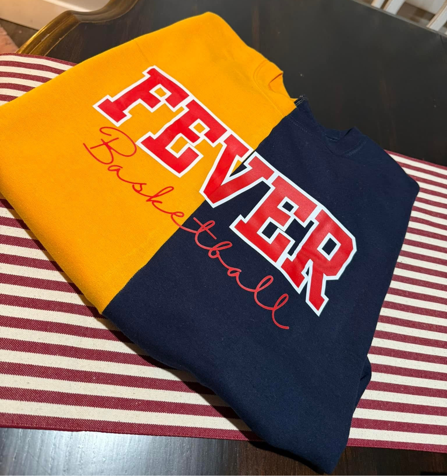 Gold and navy split crewneck as pictured